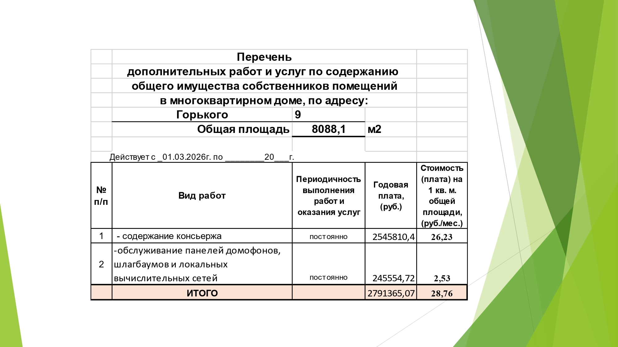 Список услуг, выполняемый управляющей компанией скачать